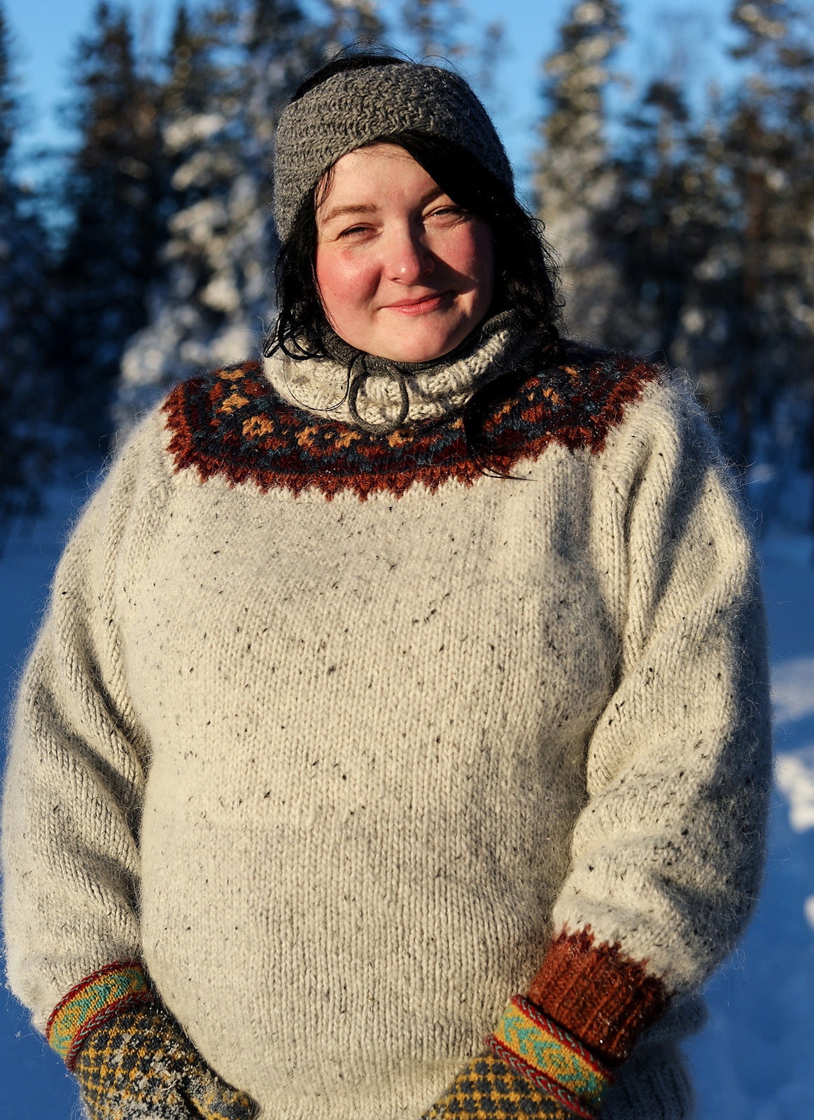 Size up or down for colorwork if necessary. Make a swatch if necessary.